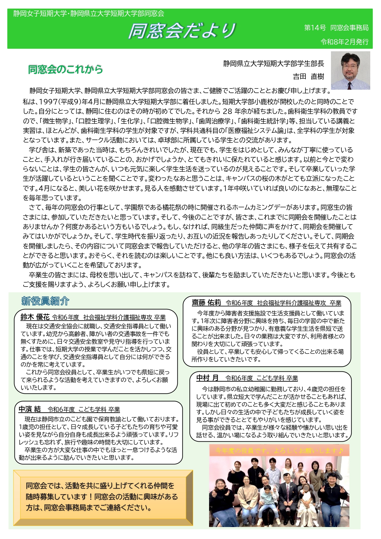 同窓会だより第14号が、令和8年2月付で発刊されました。