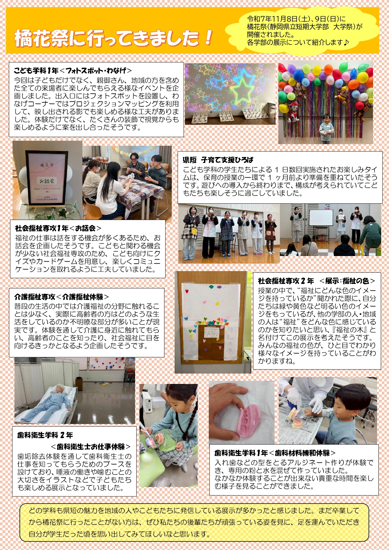 当日は橘花祭も3年振りに開催され、キャンパス全体が賑わっていました。今回参加できなかった卒業生の方々も、来年度開催の折にはぜひご参加ください。