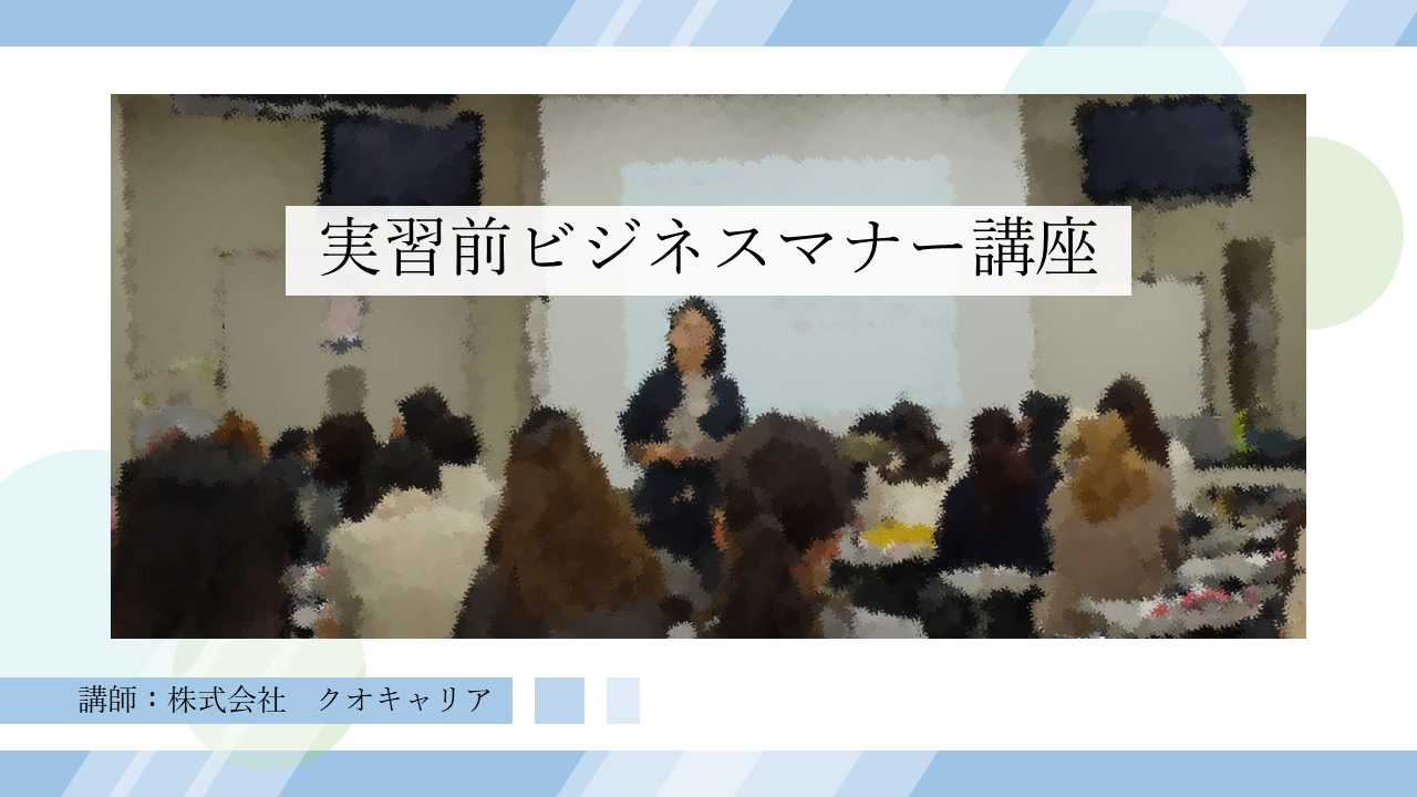 4月 歯科ガイダンス 対象:歯科衛生学科3年生 これから進路を決めていくために必要な心構えや自己分析、求人票の見方、就職活動におけるマナーについて学びます。 6月 卒業生による就職ガイダンス 対象:歯科衛生学科3年生 専門職業人として社会で活躍する先輩歯科衛生士の活躍を知ることにより、今後の就職活動や将来について考える機会としています。 このイベントはPickUpに掲載されています。 7月 歯科合同就職説明会 対象:歯科衛生学科3年生 学生が就職を希望する地域の歯科医院のお話を集中的に伺うことで、学生の働くことへの意欲を高め、見識を深めることを目的として開催いたします。 ※詳細はこちらをご覧ください。 1月 ビジネスマナー講座 これから始まる実習や就職活動に向けて、社会人としての身だしなみや言葉遣いの他、臨床実習の心構えについて学ぶ講座を開催します。