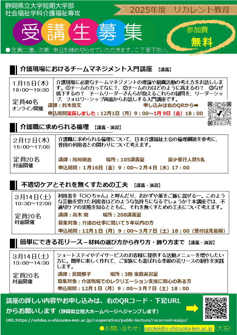 令和7年度 介護福祉専攻リカレント講座
