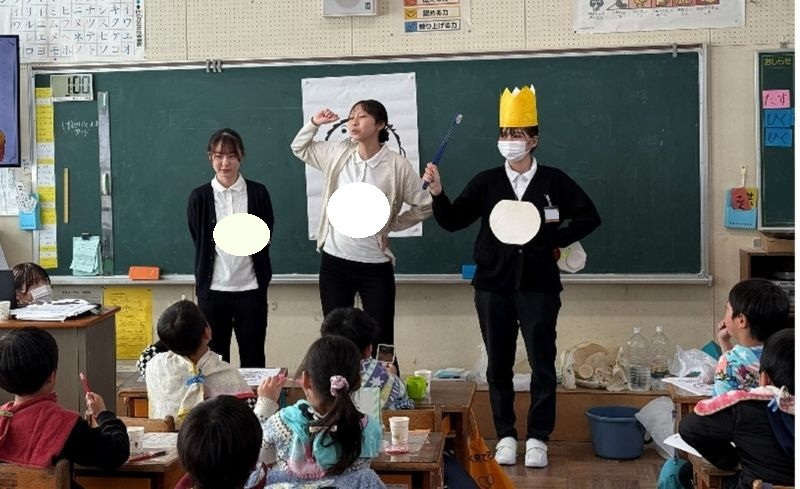 学生の話を聞いて一緒に実践してくれた東豊田小学校の皆さん、ありがとうございました。また、本学科の実習を受け入れてくださいました東豊田小学校の先生方のご指導、ご支援、保護者の皆様のご協力に感謝申し上げます。