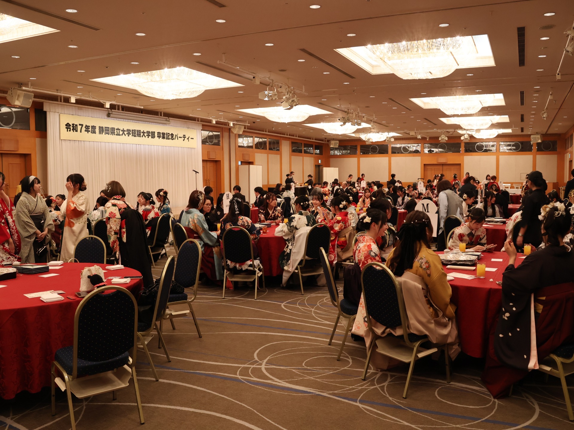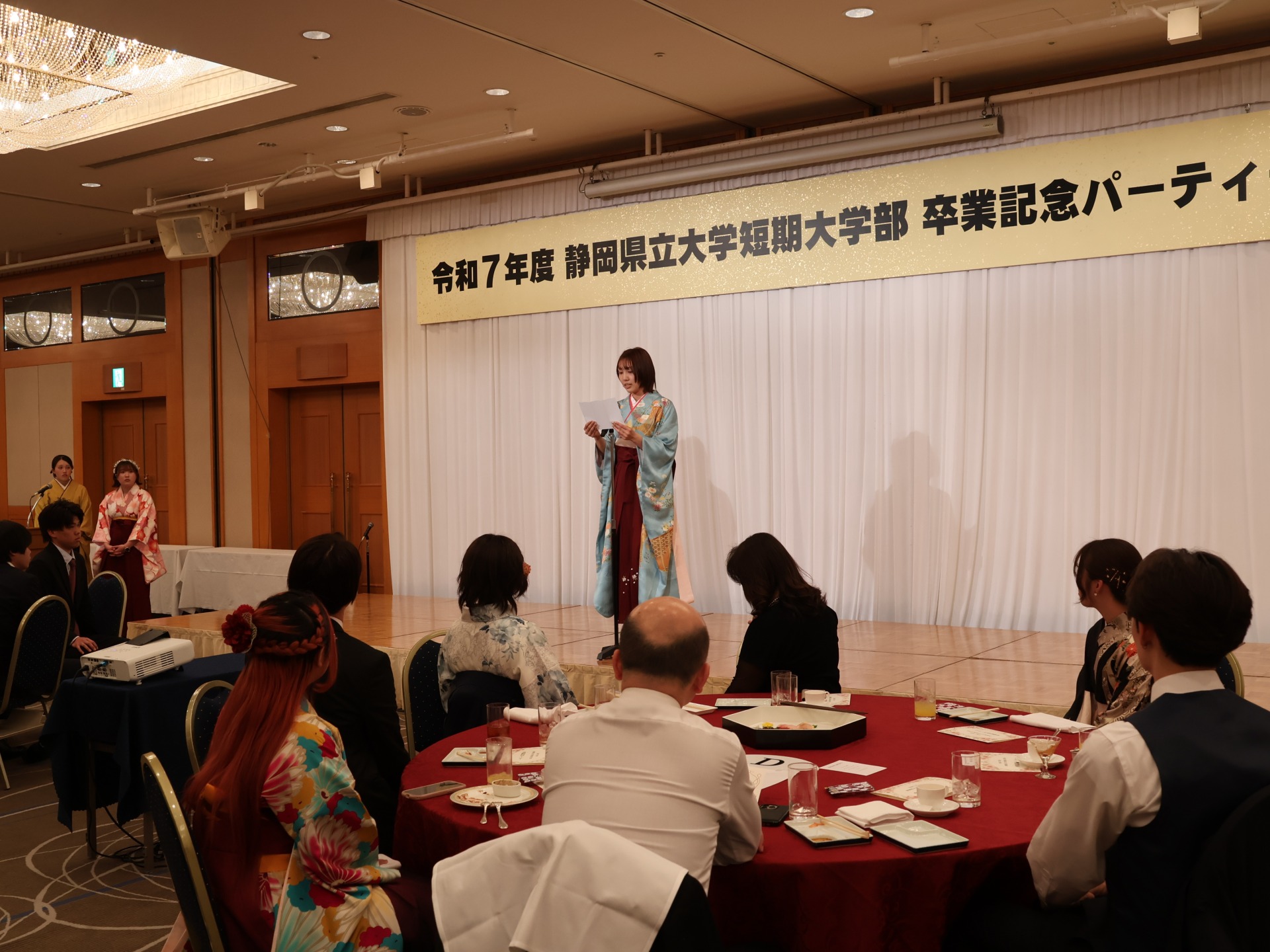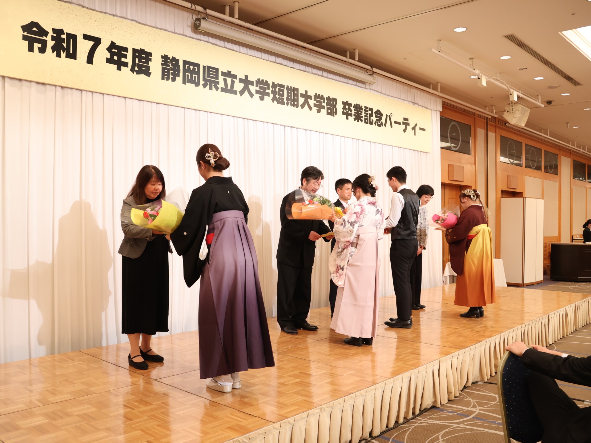 夕方からはホテルグランヒルズ静岡にて、卒業記念パーティーが開催され、卒業生たちは友人や恩師との別れを惜しみつつ、楽しいひと時を過ごしました。